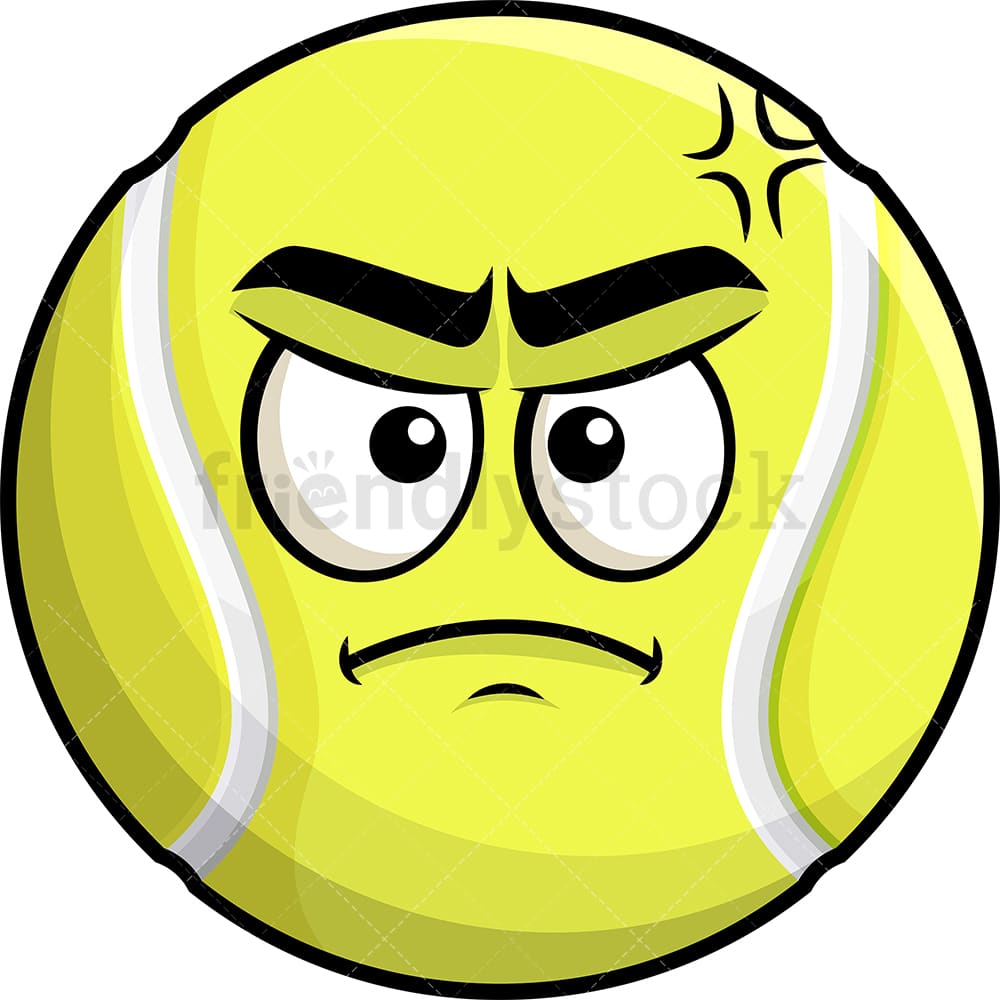 Royalty-free stock illustration of a tennis ball emoji, looking angry.
