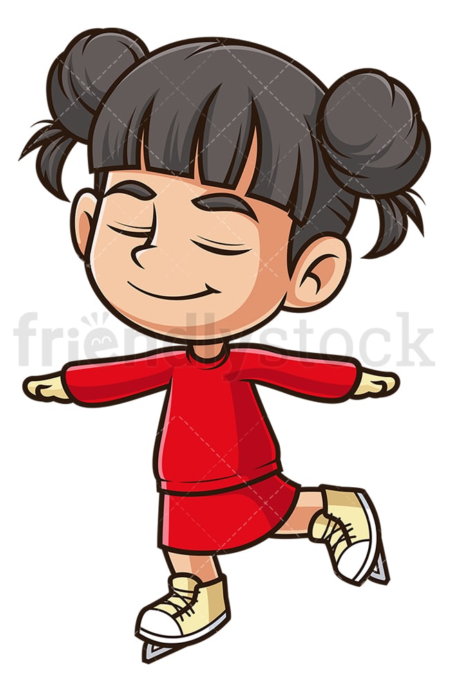 Royalty-free stock illustration of an Asian little girl looking carefree and having her eyes closed as she skates on ice.