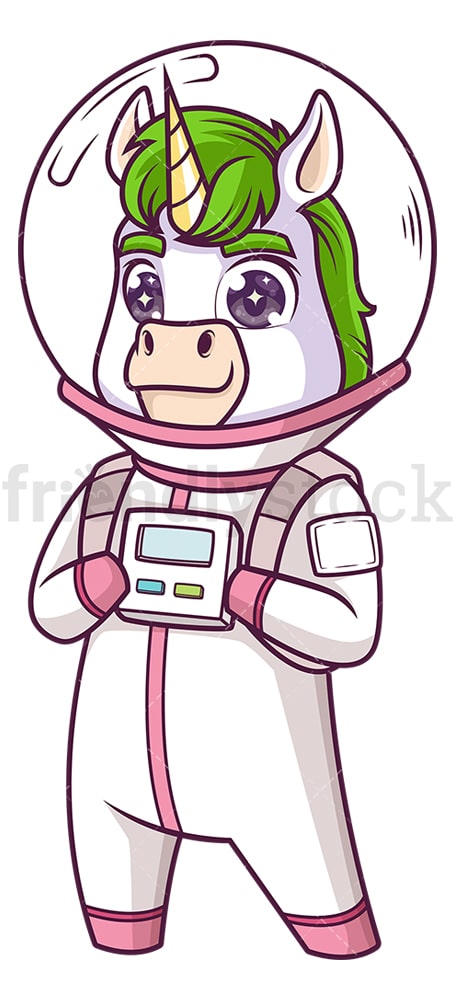 Royalty-free stock illustration of a unicorn wearing a space suit like an astronaut, looking all geared up and confident.