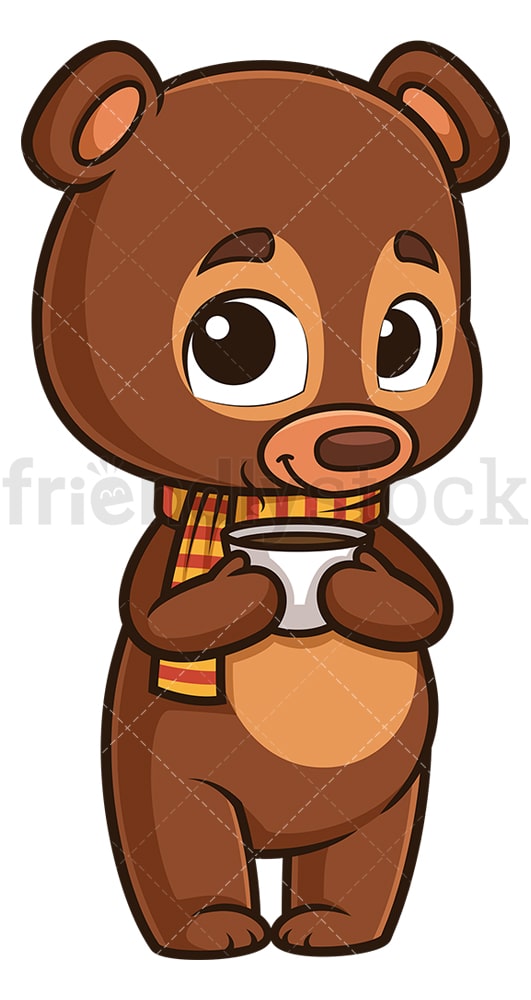 Royalty-free stock illustration of a cute autumn bear holding a cup of coffee.
