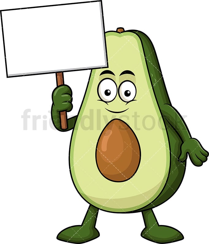 Royalty-free stock illustration of an avocado cartoon character holding a blank billboard with one hand.