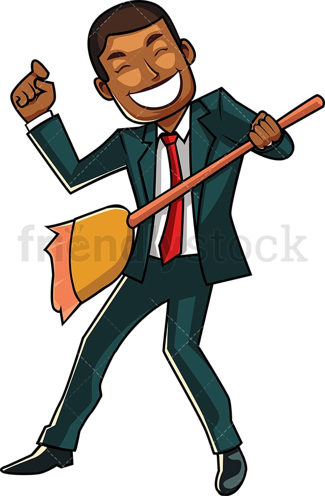 A Black Businessman Using A Broom As A Guitar Vector Cartoon Clipart
