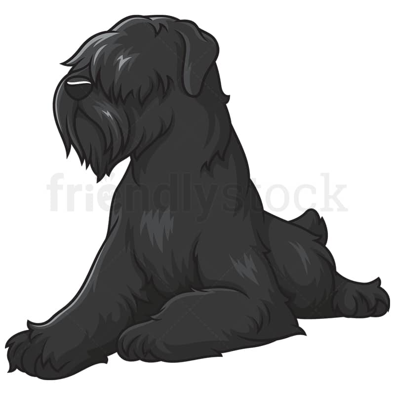 Royalty-free stock illustration of a black Russian terrier dog lying down.