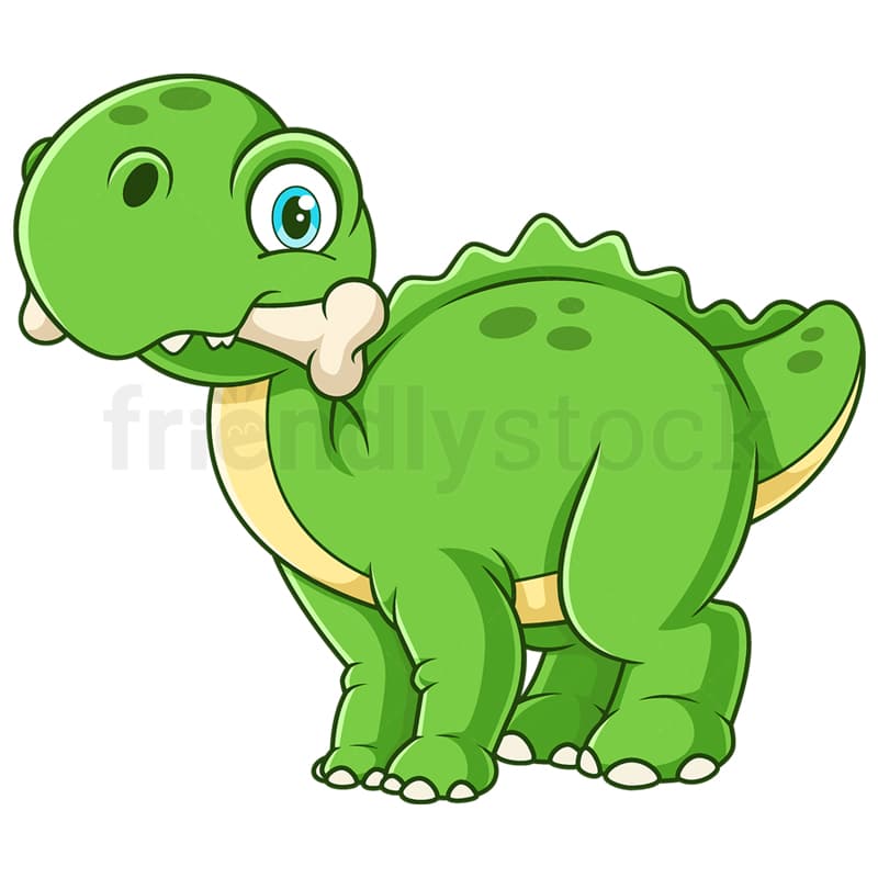 Dinosaur Dog Chewing Bone Vector Cartoon Clipart