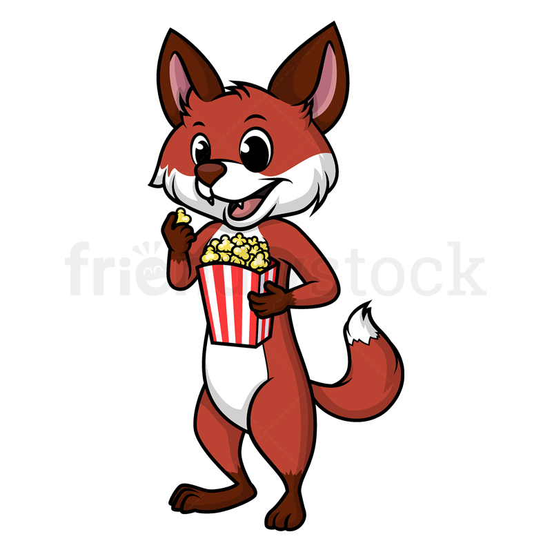Fox Eating Pop-Corn Vector Cartoon Clipart