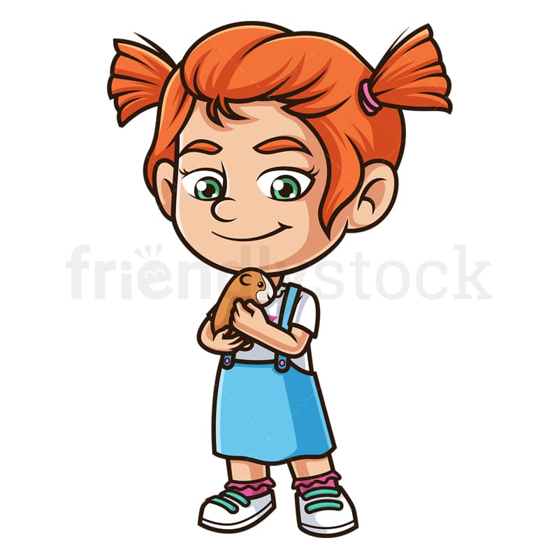 Ginger Girl Holding Guinea Pig Vector Cartoon Clipart