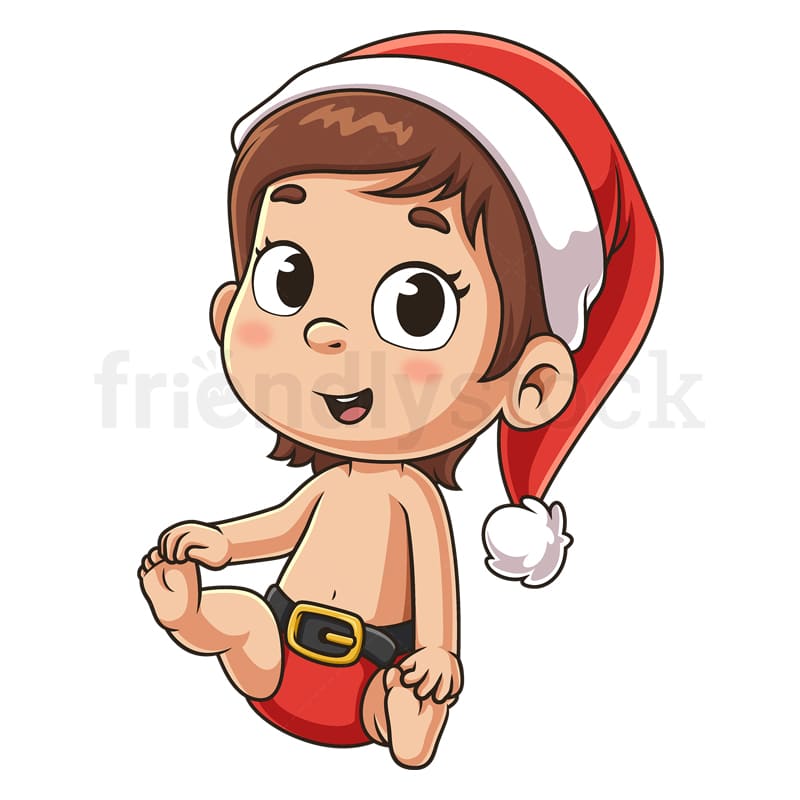 Playful Baby Girl Santa Claus Vector Cartoon Clipart