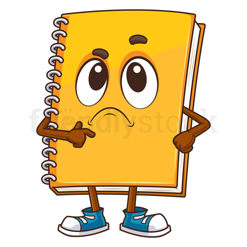 Royalty-free stock illustration of a yellow notebook mascot contemplating something.