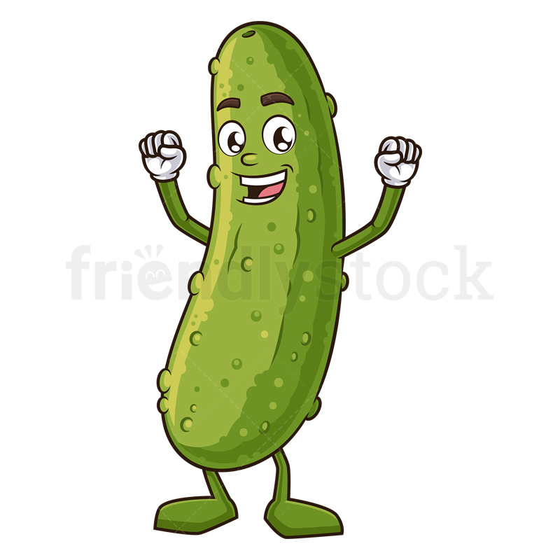 Royalty-free stock illustration of a pickled cucumber smiling as it cheers with both hands.