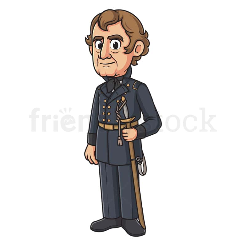 Royalty-free stock illustration of Zachary Taylor, 12th President of the United States of America, known for his military background as a career officer and his service in the Mexican-American War. Taylor’s presidency was cut short by his untimely death after only 16 months in office. Despite his limited time as president, Taylor advocated for preserving the Union and opposed the spread of slavery into newly acquired territories, contributing to the growing tensions that would eventually lead to the Civil War.