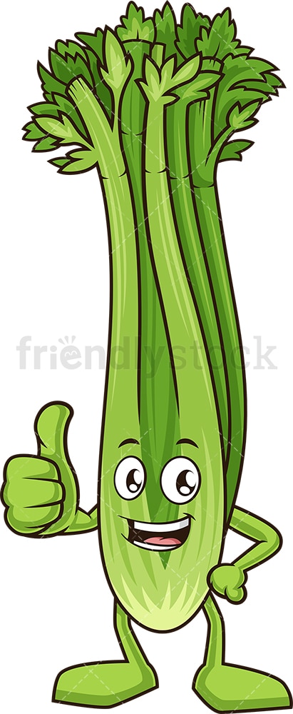 Royalty-free stock illustration of a celery making a thumbs up gesture.
