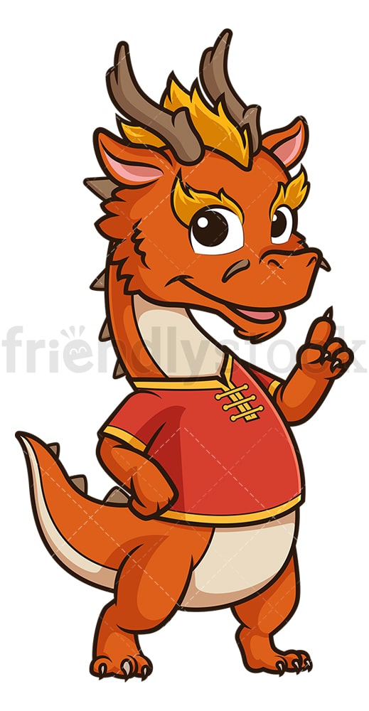Royalty-free stock illustration of a Chinese New Year dragon smiling while it points up as if giving a presentation or saying something important.