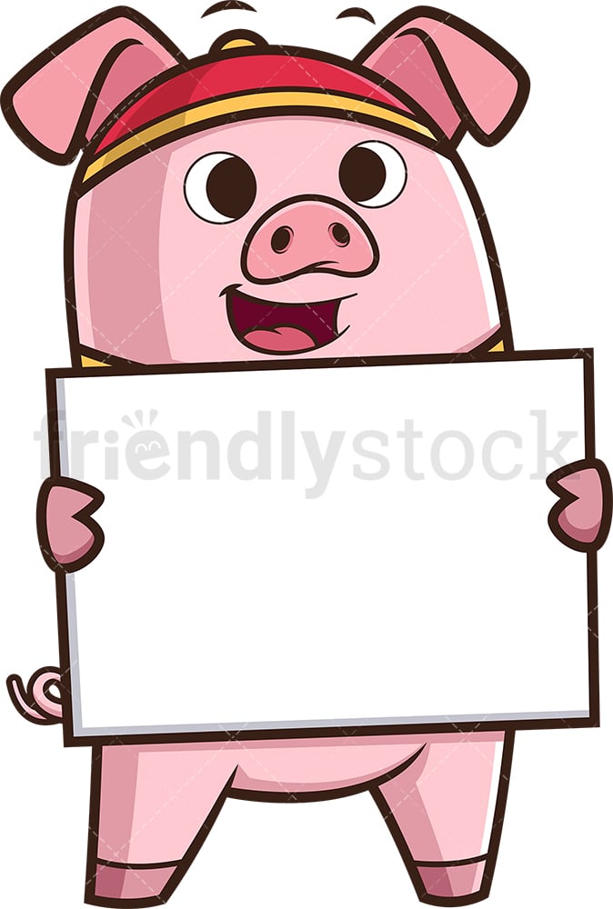 Chinese New Year Pig Holding Empty Sign Vector Cartoon Clipart