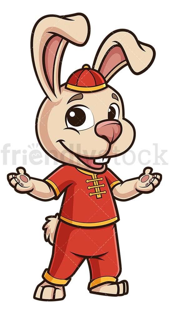 Royalty-free stock illustration of a Chinese New Year rabbit with arms wide open as if welcoming everyone, giving a presentation, or saying something important.