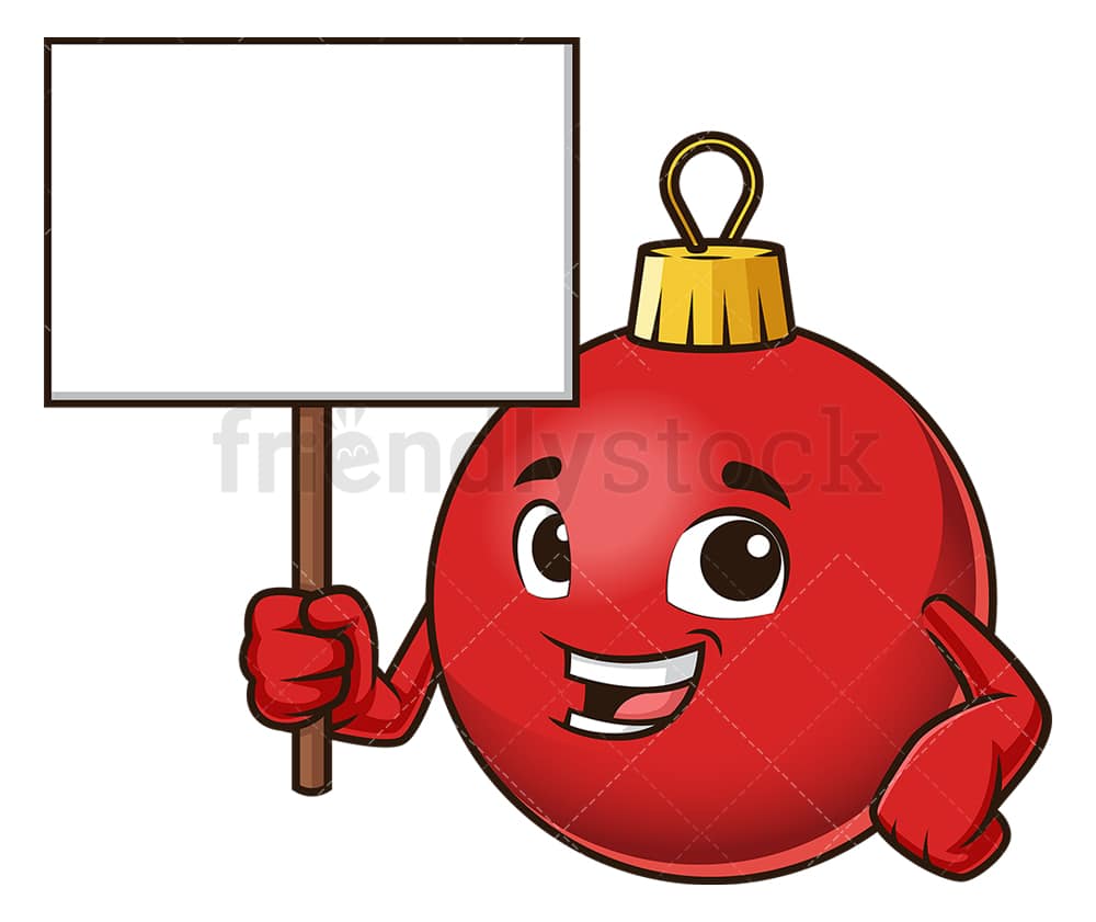 Royalty-free stock illustration of a red ornament smiling as it holds an empty billboard sign.