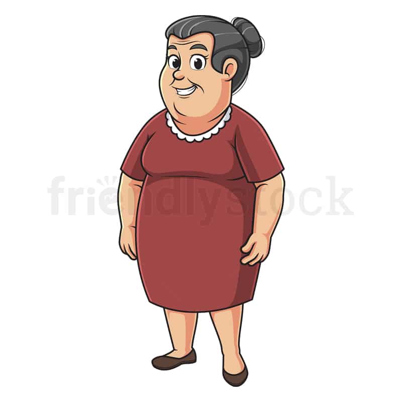Chubby Middle Aged Woman Vector Cartoon Clipart