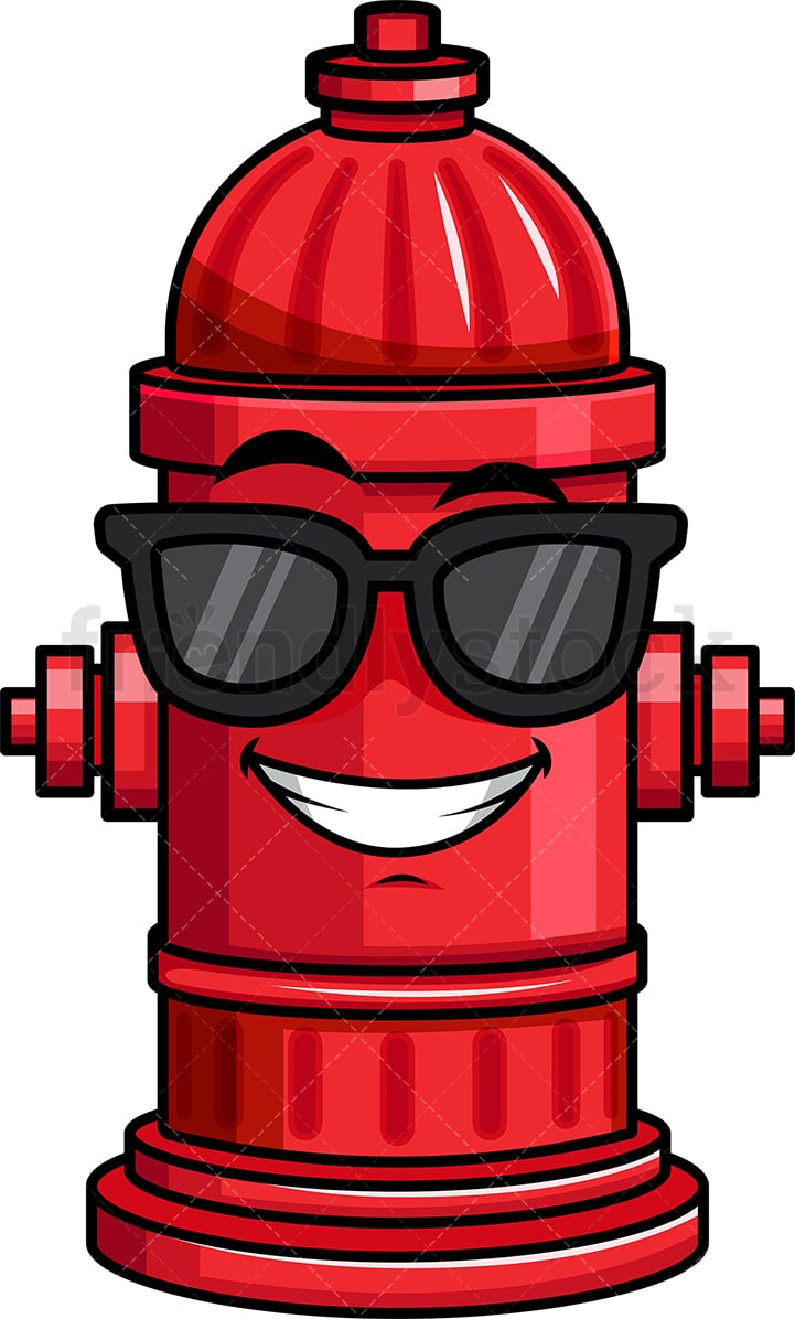 Royalty-free stock illustration of a red fire hydrant emoji, smiling and looking cool while wearing sunglasses.