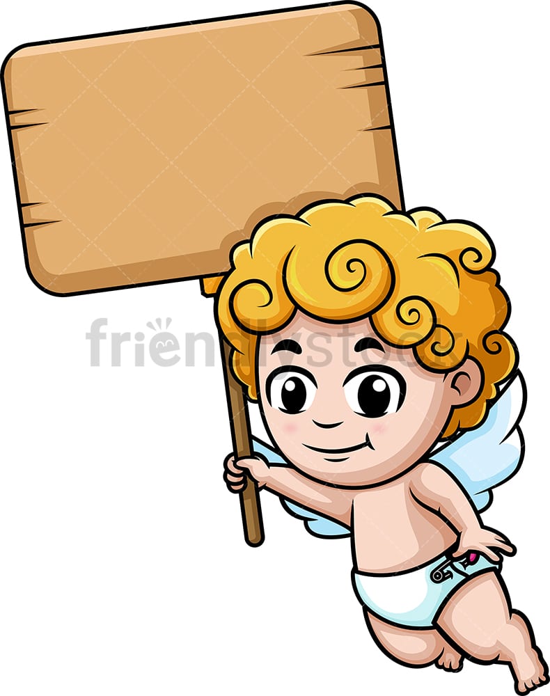 Cupid Holding Empty Sign Vector Cartoon Clipart