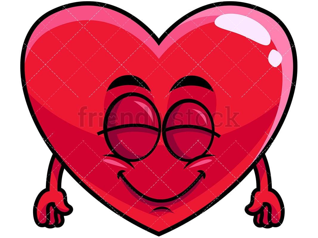 Royalty-free stock illustration of a heart emoji with simple gradients, looking pleased, feeling and showing great pleasure.