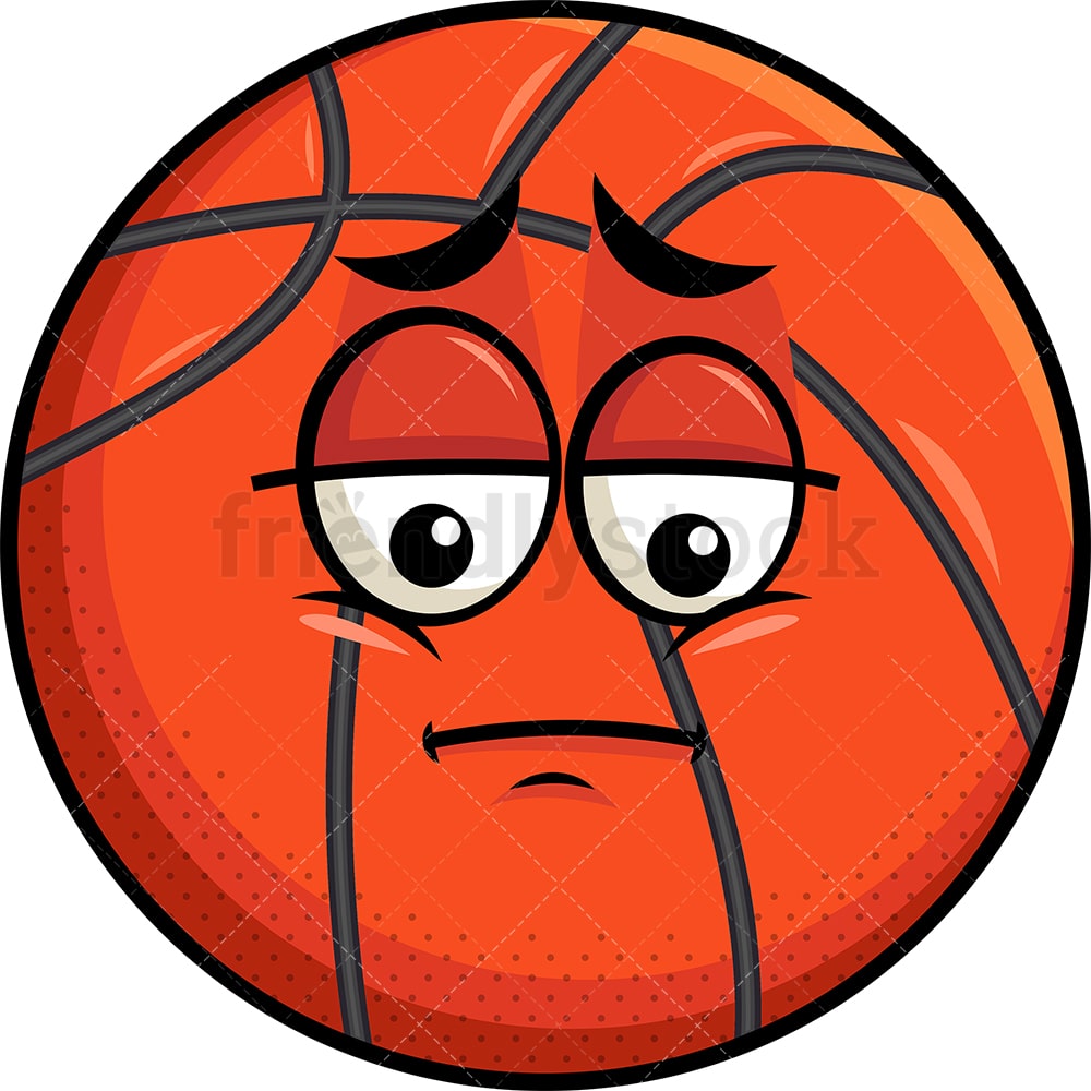 Royalty-free stock illustration of a basketball emoji, looking extremely sad and like if it has lost all hope.