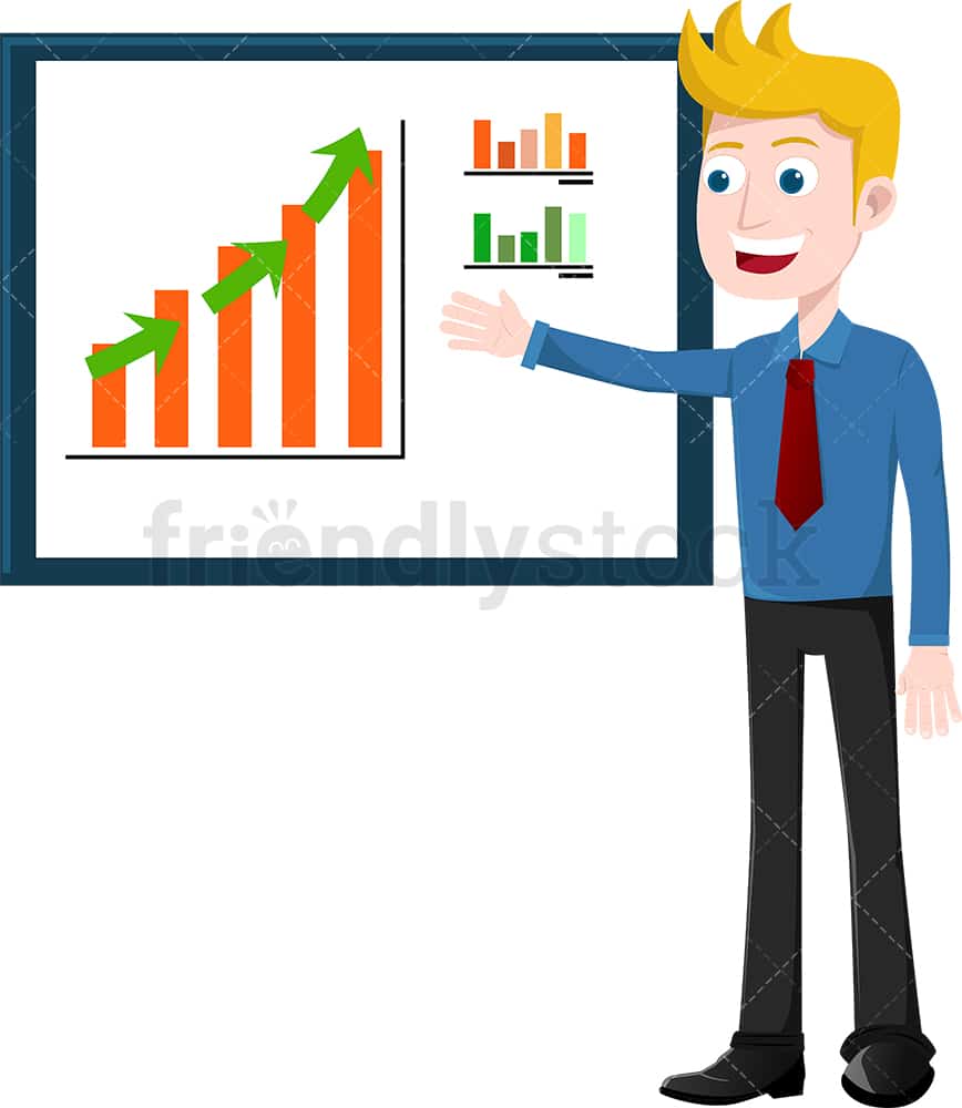 A Businessman Reviewing KPIs On A Presentation Board Vector Cartoon Clipart