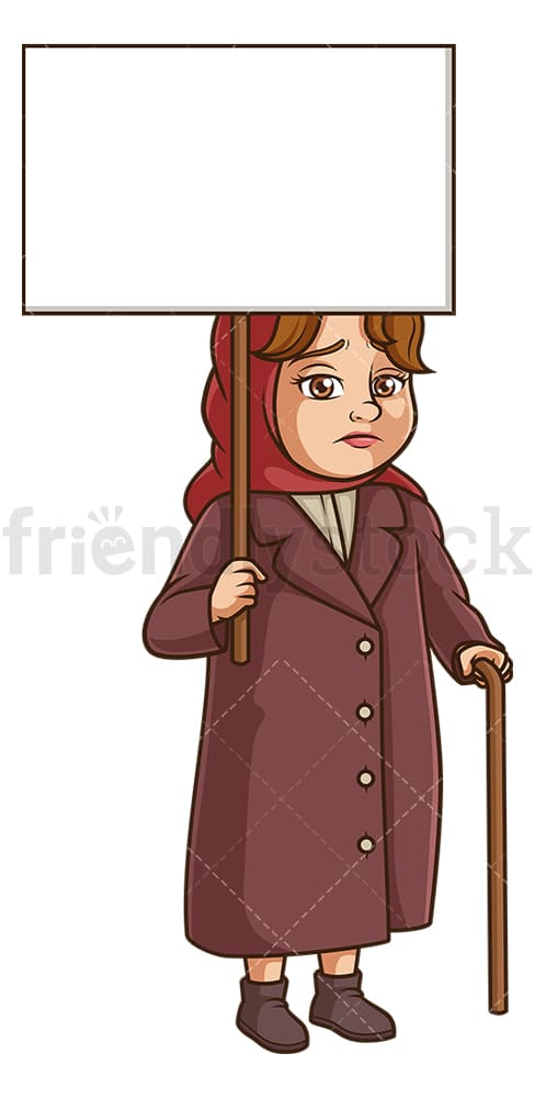 Royalty-free stock illustration of a female refugee holding an empty billboard sign.