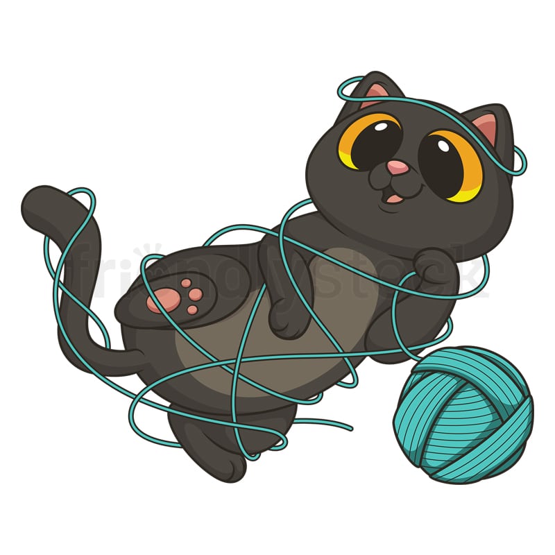 Funny Cat Tangled In Yarn Vector Cartoon Clipart