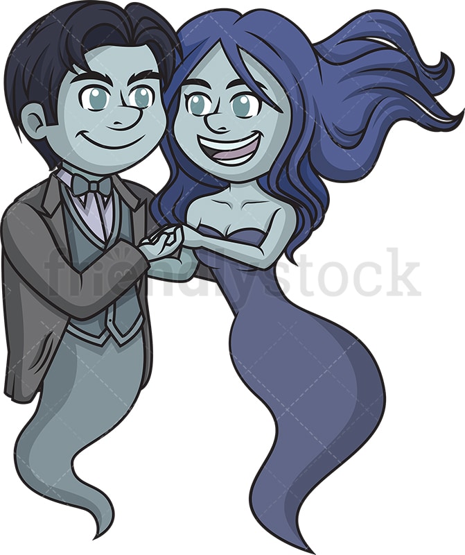 Royalty-free stock illustration of a man and a woman in ghost form, holding hands and looking in love.