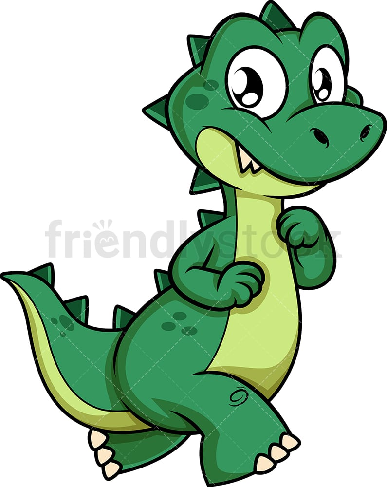 Royalty-free stock illustration of a cute green dinosaur walking relatively fast.