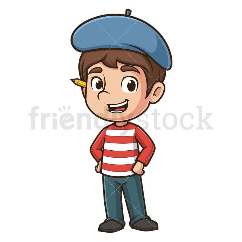 Royalty-free stock illustration of a confident artistic man wearing a blue beret and a pencil behind his ear.