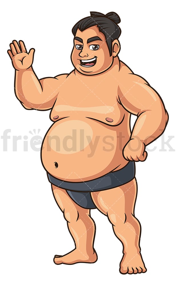 Royalty-free stock illustration of a professional sumo fighter looking in a good mood and waving.
