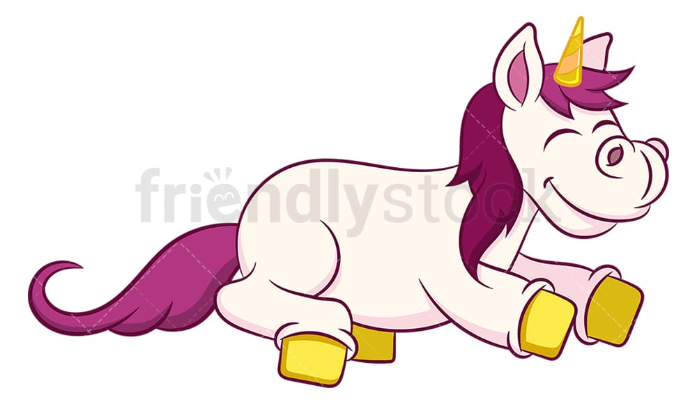 Royalty-free stock illustration of a unicorn lying down, resting with eyes closed, smiling gently.