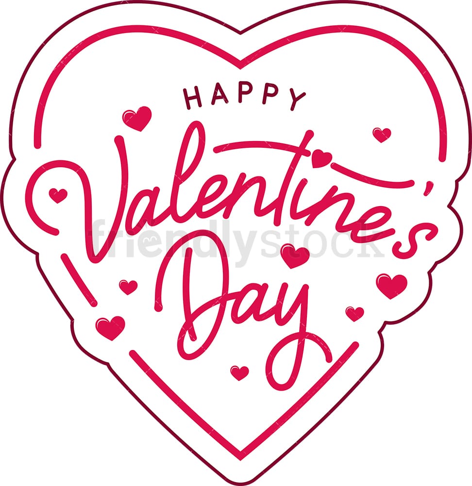Royalty-free stock illustration of a heart-shaped emble with the words Happy Valentine Day written on it.