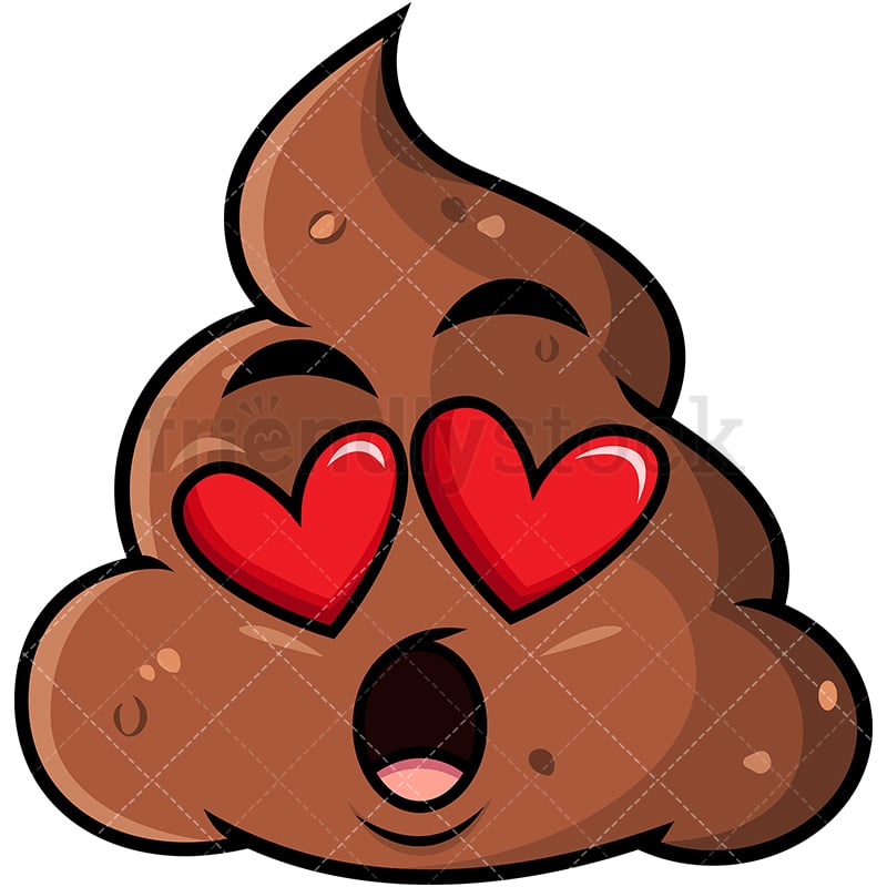 Royalty-free stock illustration of a poop emoji, with heart eyes and its mouth wide-open, falling in love.