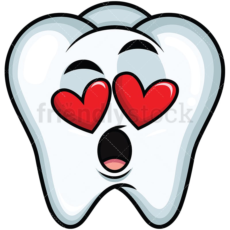 Royalty-free stock illustration of a tooth emoji, with heart eyes and its mouth wide-open, falling in love.