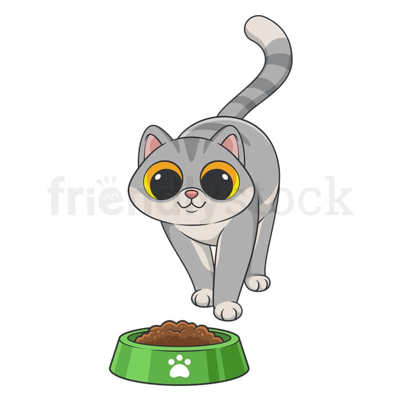 Kitty Approaching Bowl With Cat Food Vector Cartoon Clipart
