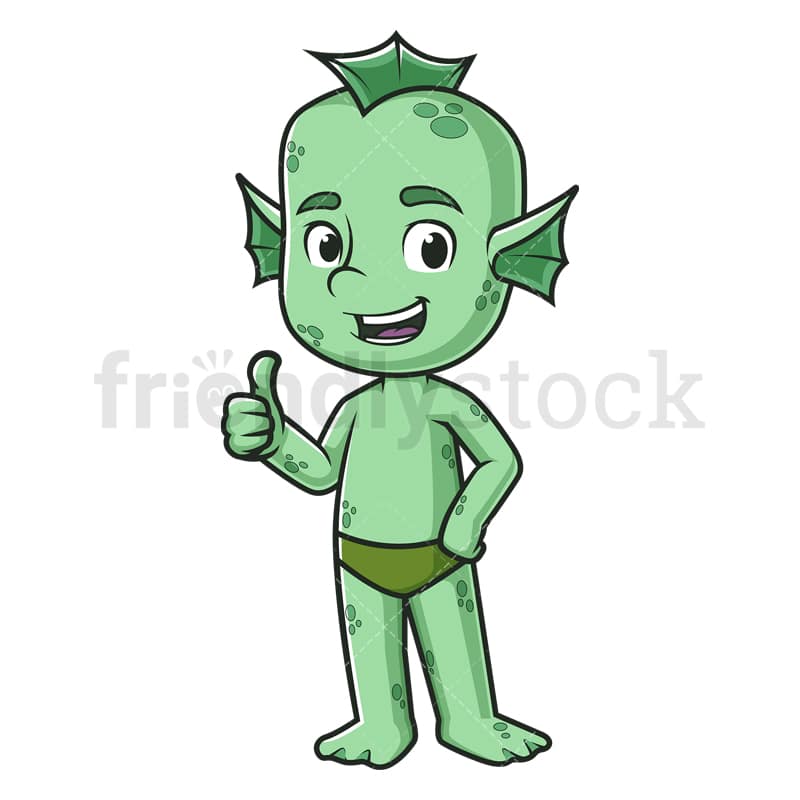 Royalty-free stock illustration of a cure green merman looking excited as he makes a thumbs up gesture of approval.