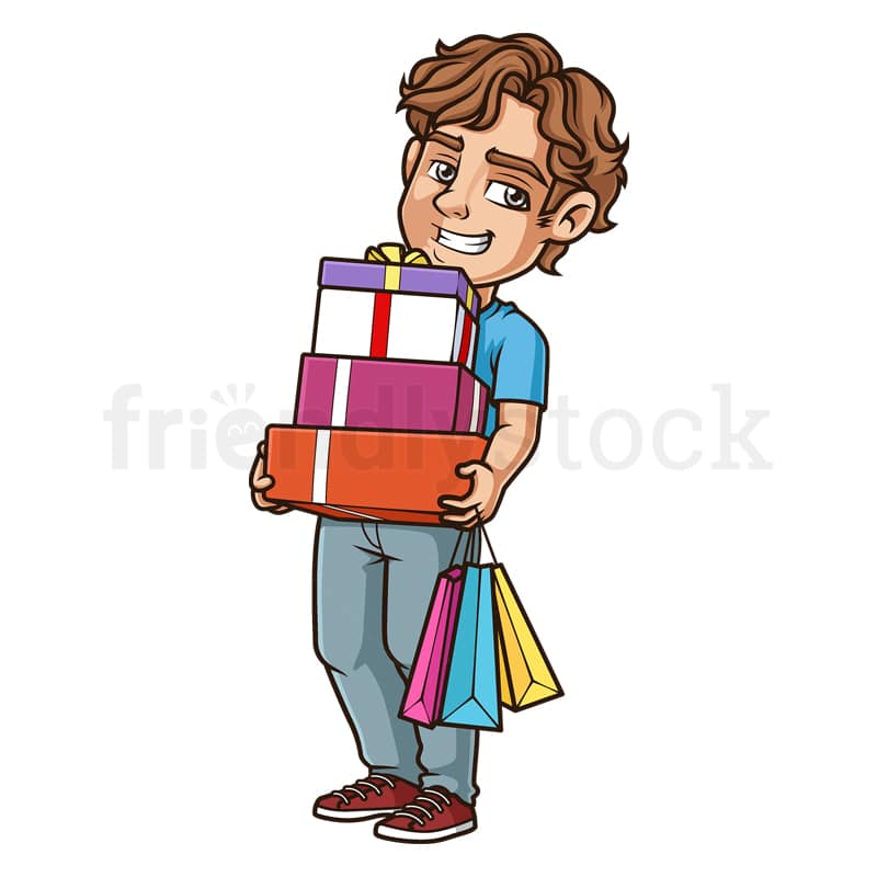 Young Man Shopping Gifts Vector Cartoon Clipart