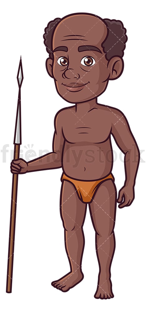Royalty-free stock illustration of an old male bushman with a spear.