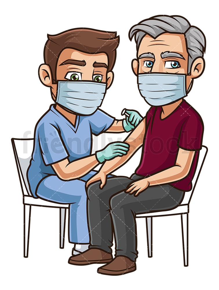 Old Man Getting Vaccinated For COVID-19 Vector Cartoon Clipart