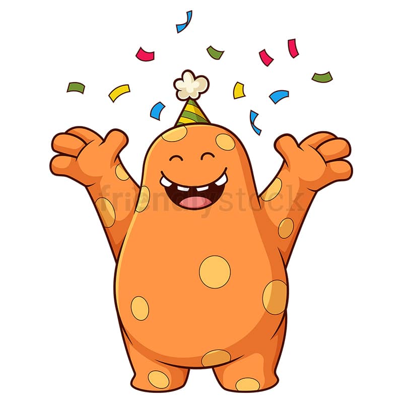 Orange Monster Birthday Party Vector Cartoon Clipart