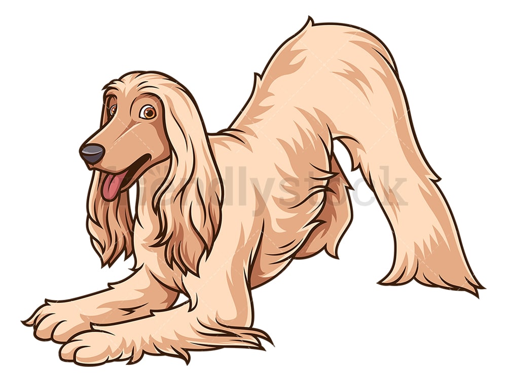 Royalty-free stock illustration of an Afghan hound dog stretching and looking in a good mood.