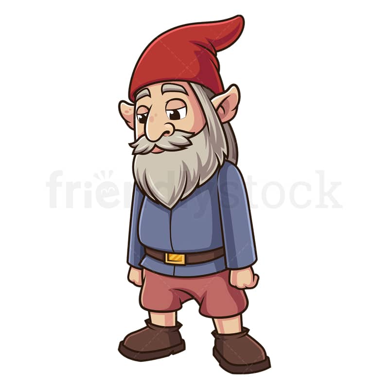 Royalty-free stock illustration of an old gnome with gray hair and beard, wearing a pointy red hat, looking disappointed.