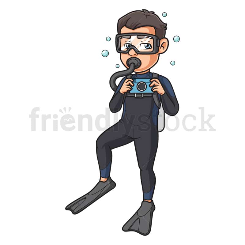 Male Scuba Diver Underwater Photo Vector Cartoon Clipart