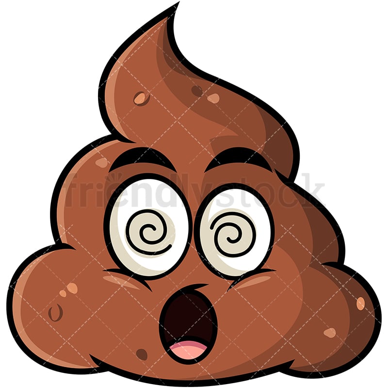 Royalty-free stock illustration of a poop emoji, with its mouth wide-open, looking disoriented.