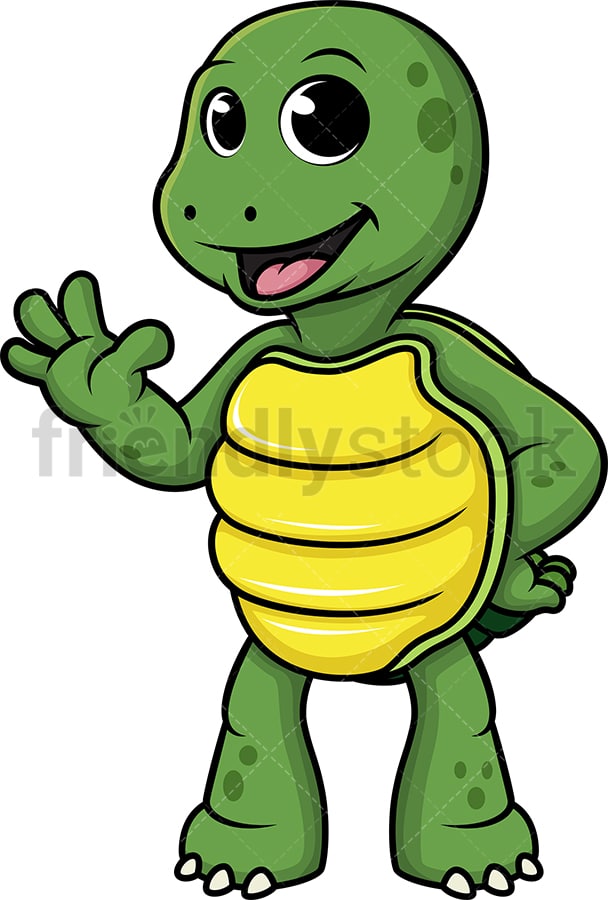 Royalty-free stock illustration of a turtle waving hello or goodbye while smiling.