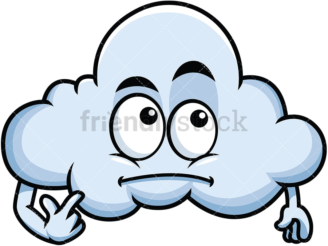 Royalty-free stock illustration of a cloud emoji, looking like it is thinking hard about something, considering all options.