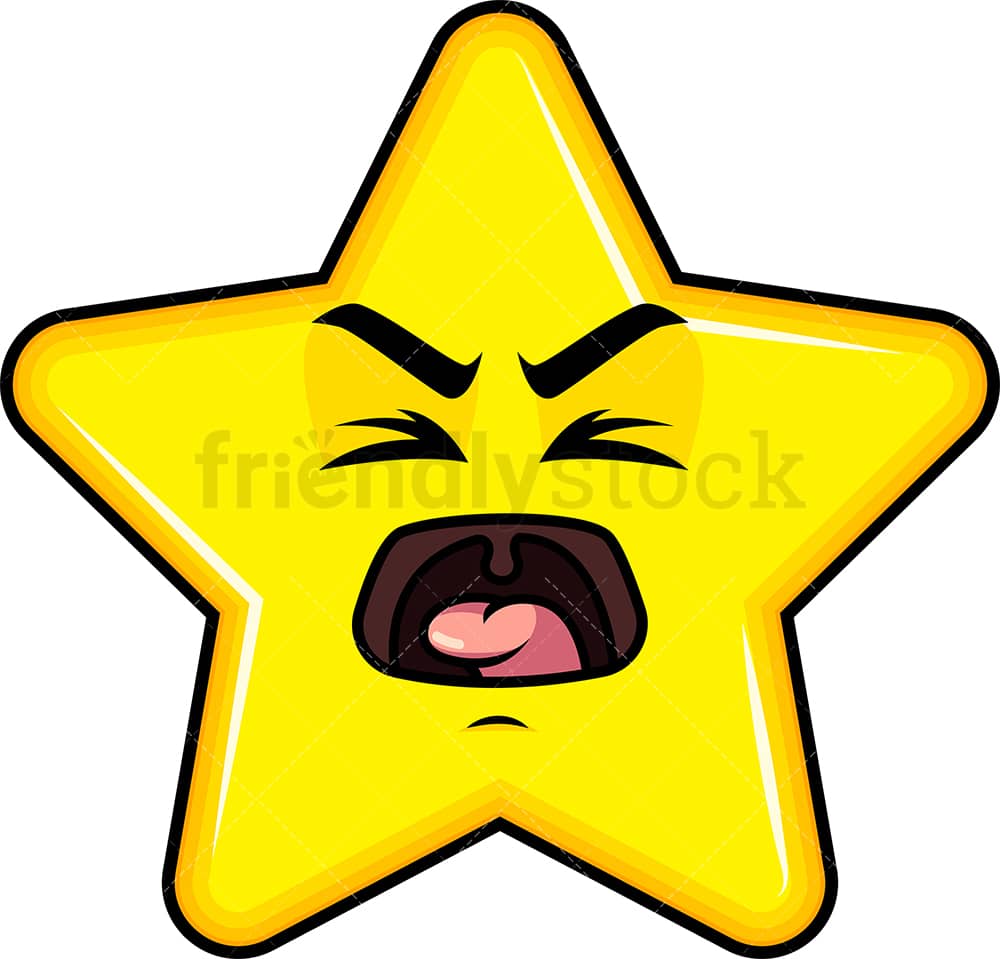 Royalty-free stock illustration of a yellow star emoji, yelling with all its got.