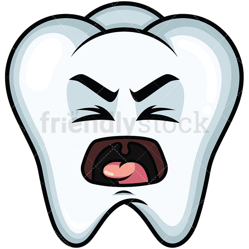 Royalty-free stock illustration of a tooth emoji, yelling with all its got.