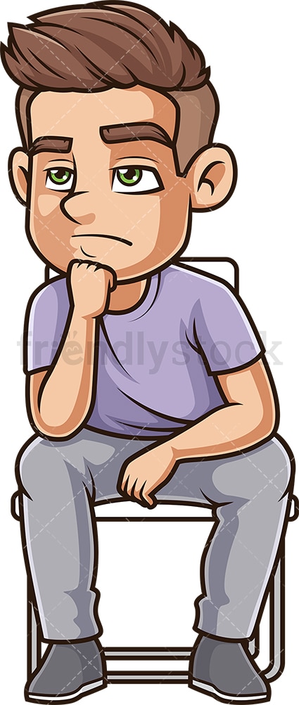 Royalty-free stock illustration of a young man sitting on a chair and thinking.